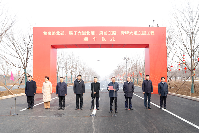 2月8日,備受全市人民關注的龍泉路北延、墨子大道北延、青啤大道東延、府前東路東拓工程四條城區重點道路通車儀式舉行。棗莊市委常委,滕州市委書記王廣部出席儀式并講話,市委副書記、市長周剛主持儀式,市領導朱晏辰、薛登峰、程亮、康鳳霞、顏丙磊、趙煒,滕投集團董事長方玉新出席儀式。 儀式上,市委常委