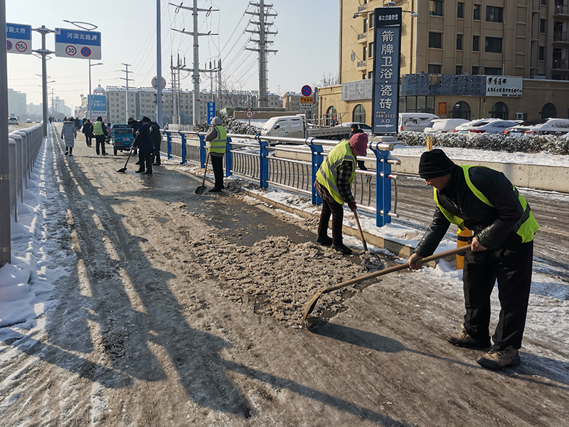 2月4日至5日期間,全市出現連續降雪、寒潮天氣,給群眾的日常出行帶來很大不便。興滕公司積極響應市委市政府號召,第一時間組織黨員干部職工到平行路進行掃雪除冰,以實際行動踐行“我為群眾辦實事”。 在現場,大家不畏嚴寒、齊心協力,攜帶鐵锨、雪鏟等工具迅速投入到破冰除雪活動中,同時安排多臺鏟車上路清