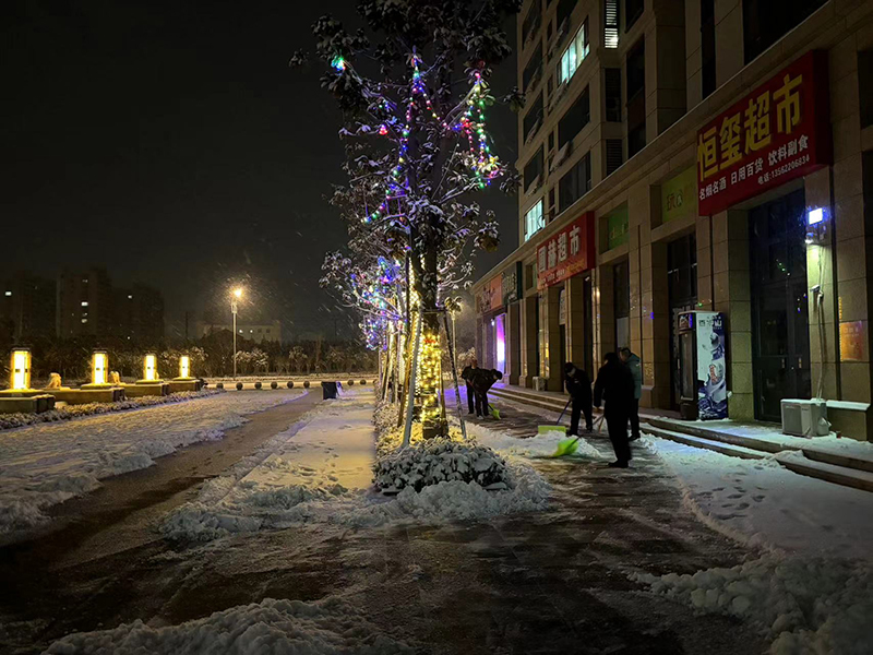 2月4日,滕州突降暴雪。滕投集團山東天行健公司新發物業為保障業主出行方便及安全,連夜組織員工對恒璽書苑、熙城甲第、天行健廣場、馮東馮西等負責項目進行路面積雪清除工作。新發物業工作人員通宵奮戰、輪流工作,在凌晨4點雪停之際,完成大部分地面的積雪清除,保障了業主的出行安全。 下一步,新發物業將繼