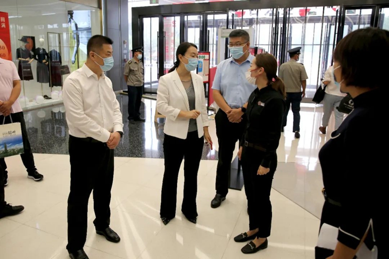 9月9日,市商務和投資促進局黨組書記崔波、局長單金鳳帶隊來人和廣場檢查疫情防控及安全生產工作。集團總經理侯欽軍、副總經理趙海軍陪同活動。崔波一行重點檢查了人和廣場商鋪員工健康監測、進入人員掃碼測溫及安全生產管理落實情況,要求相關負責人要嚴格落實主體責任,把疫情防控和安全生產工作各項要求做細做實,全力構