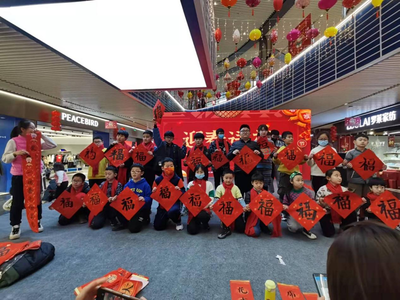 虎年將至,為迎接新年到來,滕投·人和廣場舉辦新春送春聯活動,邀請了近百名熱愛書法的小朋友現場書寫春聯,免費贈送商場顧客。