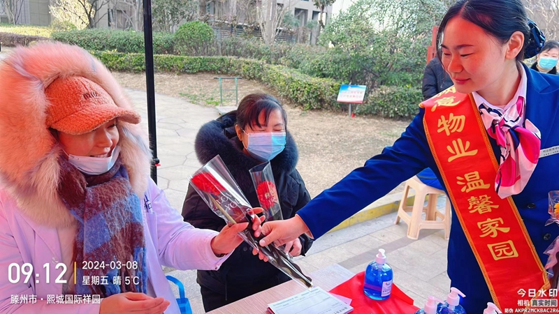 熙城國際誠園、東城名景、人和藍灣、滕投華府、大同印象多個物業服務中心開展了“溫馨滿溢、鮮花獻女神”活動,為女性業主和住戶們獻上了節日的鮮花,表達對她們的敬意和祝福。
